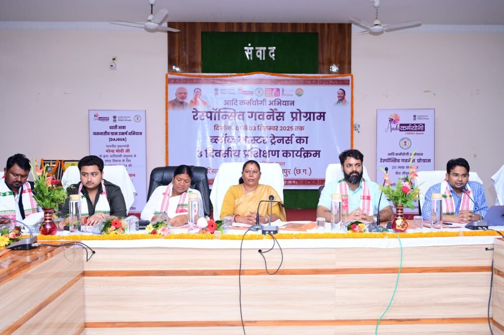 जशपुर में आदि कर्मयोगी अभियान के तहत रेस्पॉन्सिव गवर्नेंस कार्यक्रम के अंतर्गत 3 दिवसीय प्रशिक्षण कार्यक्रम का शुभारंभ