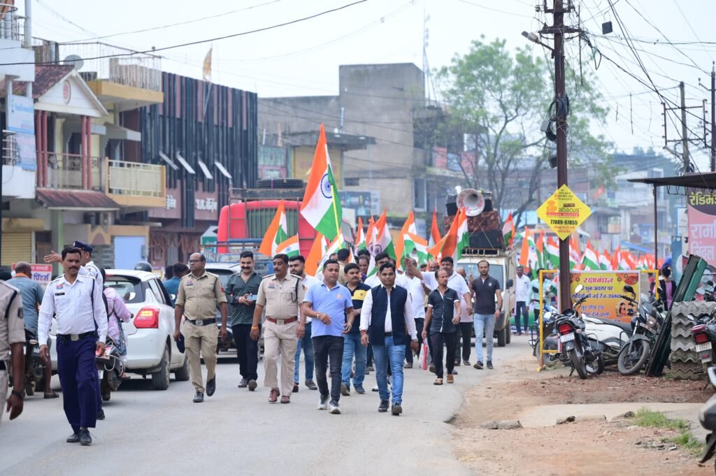 इसी क्रम में बुधवार को पत्थलगांव नगर में विधायक निवास कार्यालय से, सरगुजा आदिवासी विकास प्राधिकरण उपाध्यक्ष एवं क्षेत्रीय विधायक श्रीमती गोमती साय की उपस्थिति में नगर के तीनों मुख्य मार्गों से “भव्य तिरंगा यात्रा” निकाली गई। इसी प्रकार कांसाबेल और लुड़ेग में भी हर घर तिरंगा अभियान के तहत उत्साहपूर्वक तिरंगा यात्राओं का आयोजन किया गया, जिसमें स्थानीय जनप्रतिनिधि, अधिकारी, विद्यालय के छात्र-छात्राएं और बड़ी संख्या में नागरिक शामिल हुए।